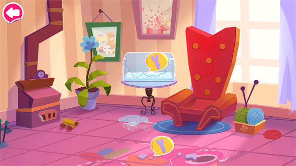 修理小达人糖糖最新版玩家需要协助虚拟角色糖糖处理各类坏掉的东西比如这里的鱼缸破了,那里的墙纸需要重新修补,路边的跷跷板被压断了,就连外星人托比的飞船似乎都出了问题等等。游戏没有任何的时间限制,让小伙伴能够畅玩,给玩家带来独特的感受。