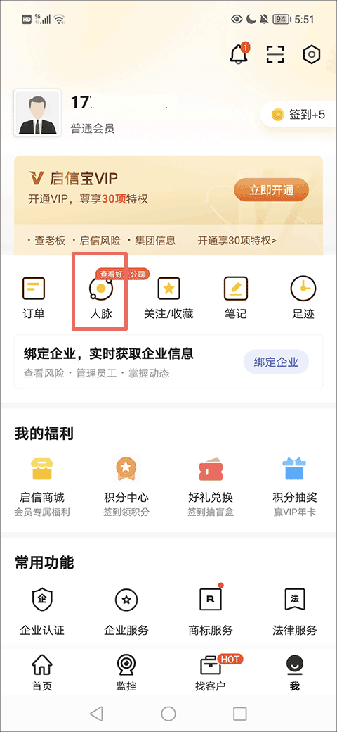 2、在人脉雷达界面找到并点击“开启通讯录权限,查看好友人脉”选项;