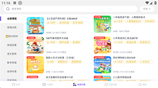 精选海量原创动画,采用“看动画—学知识—做练习”三步启发式学习法,帮助孩子轻松掌握科学、自然、生活等丰富知识。