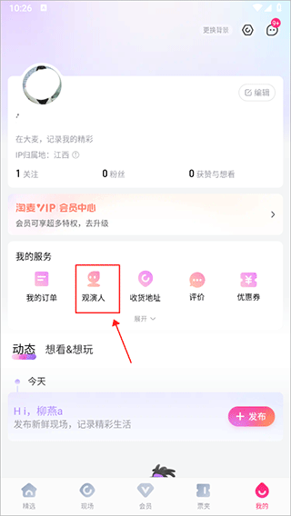 1、在app我的界面中点击观演人
