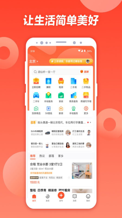 58同城提供丰富的分类信息,涵盖房屋租售、二手买卖、招聘求职、二手车交易、汽车租售、宠物票务、餐饮娱乐等多个领域。用户可以免费查询和发布各类生活服务信息,满足日常生活中的各种需求。